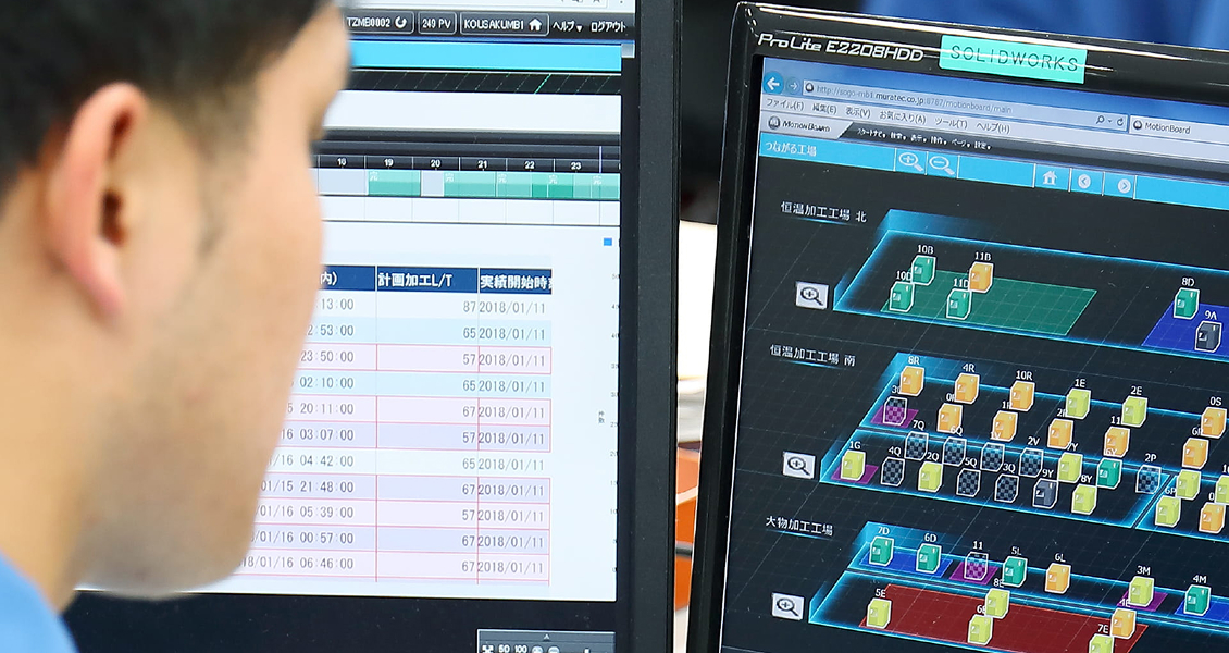 ムラテックでは、“機械にできることは機械に任せ、人間はより創造的な仕事へ”というポリシーのもと、全ての事業で自動化と省力化の最前線を走り続けています。繊維機械事業では空気の旋回流を利用した「マッハスプライサー」を世界で初めて開発し、糸づくりの常識を変革。工作機械事業では、高精度・高速生産を可能にする「平行2軸CNC旋盤」をはじめ、数多くの革新的製品・システムを生み出しています。さらにL&A事業ではコンピュータでコントロールする国産初の立体自動倉庫や戦略的物流システムを、クリーンFA事業では非接触搬送システムを実現。情報機器事業でも、デジタル複合機から情報セキュリティまで領域を広げ、独自の技術革新を積み重ねています。