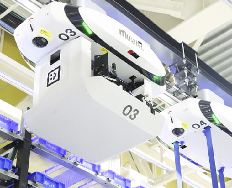 天井空間を活用した搬送システム。最短距離での搬送やフレキシブルなレイアウトが可能。