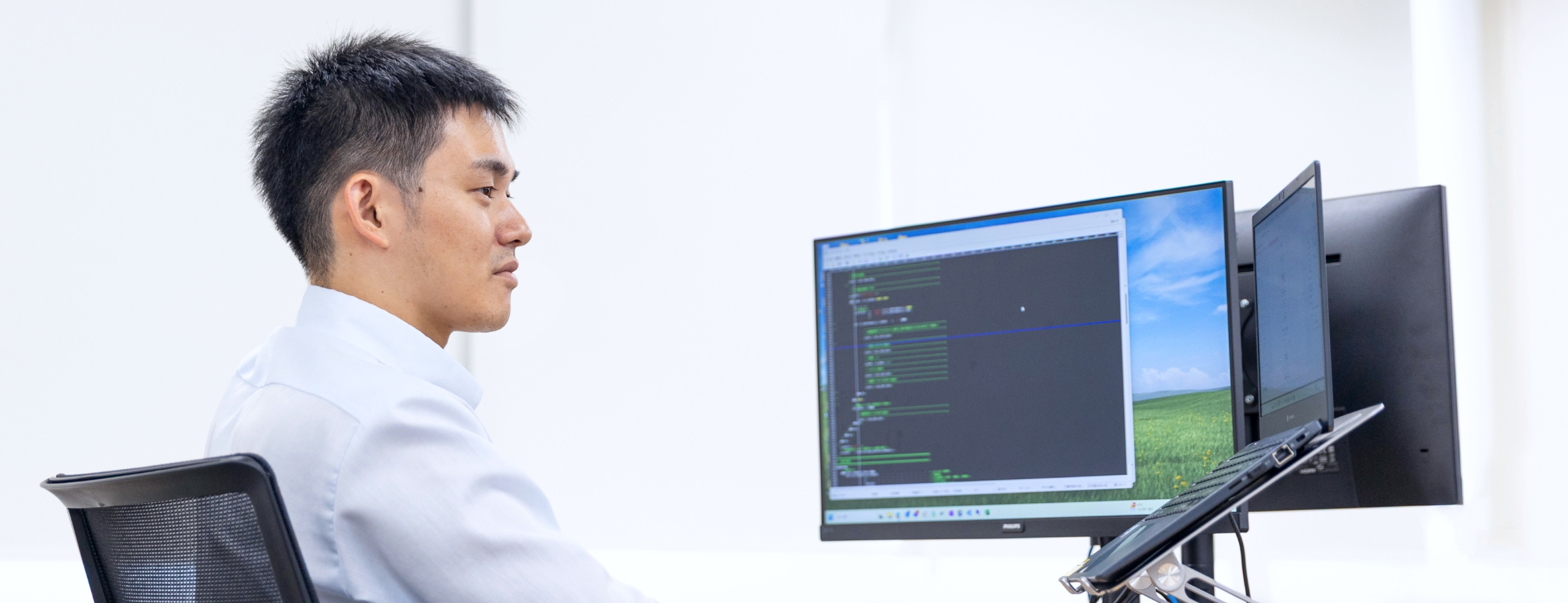 営業職やヘルプデスク業務など、複数の業界・職種を経験したのち、もともと興味があったプログラマーへの挑戦を志す。現在は、社内基幹システムの一部である資材管理システムの改修・運用に携わる。勉強熱心な性格で、業務に関わるさまざまな資格取得にも積極的。