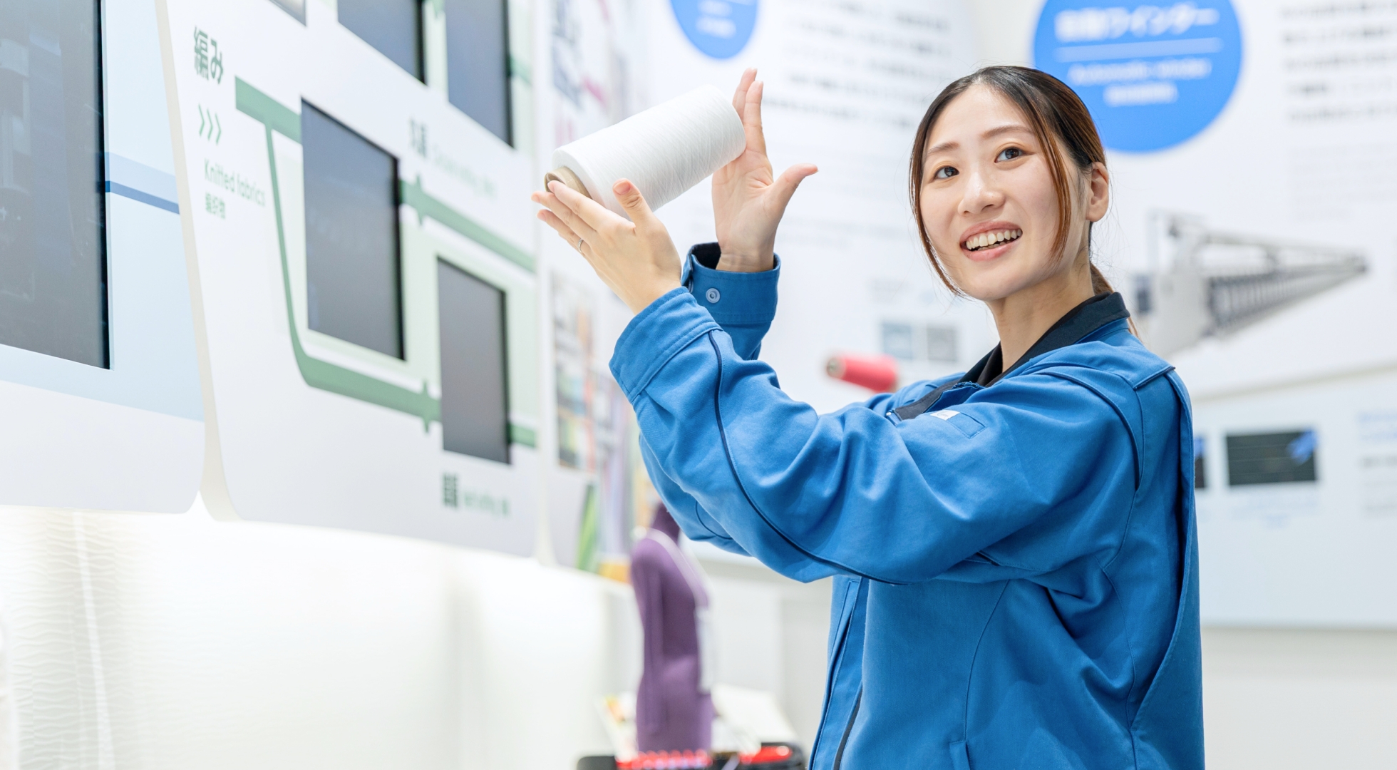 シームレスな連携。繊維機械事業部の制御開発チームで、機械の制御部分を担うプログラムを作成し、モーターを動かしたり、センサーから情報を取ったりという、いわば「機械の基盤」をつくる業務にあたっています。機械が正常に動作するには、メカ・電気・ソフトなど各要素の連携が欠かせません。最終的に1台の機械として滑らかに動くように、私も他のチームの人たちと連携しながら日々開発設計に取り組んでいます。他にも、クラウドに上げたデータを分析して機械の性能をよりよくする取り組みや、新規事業を提案する業務にも携わっています。
