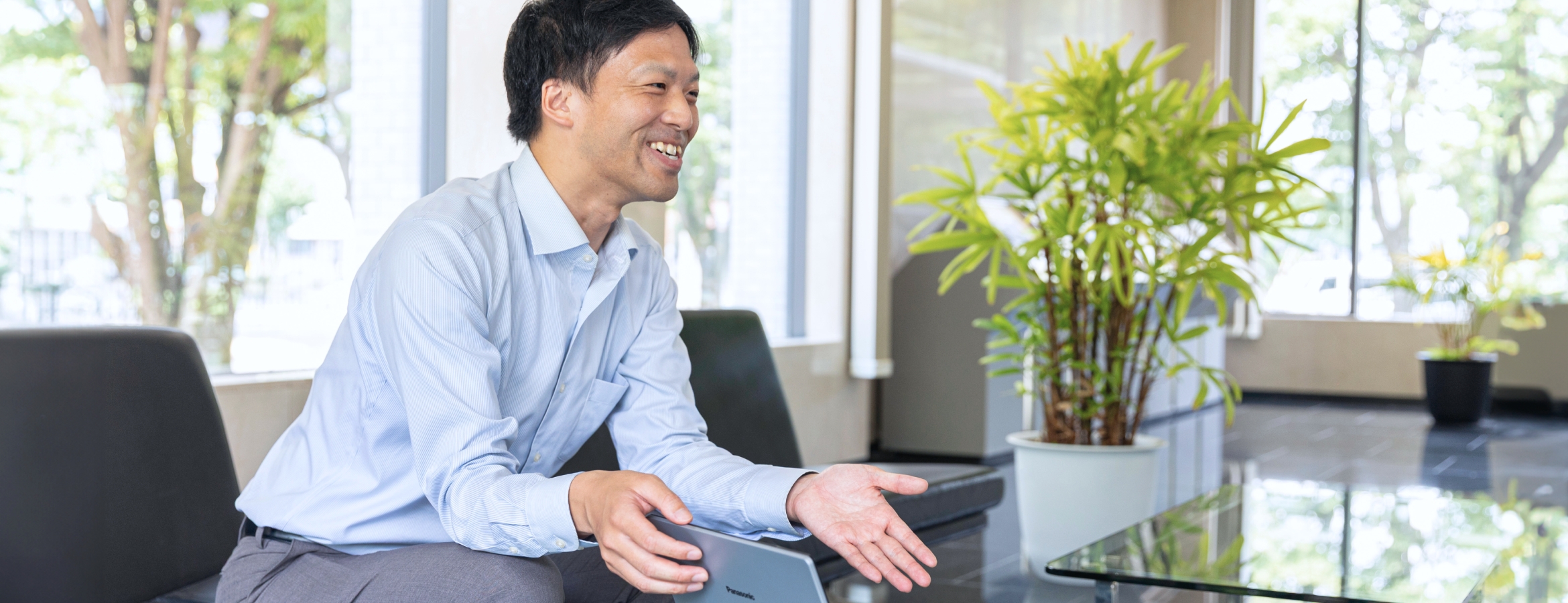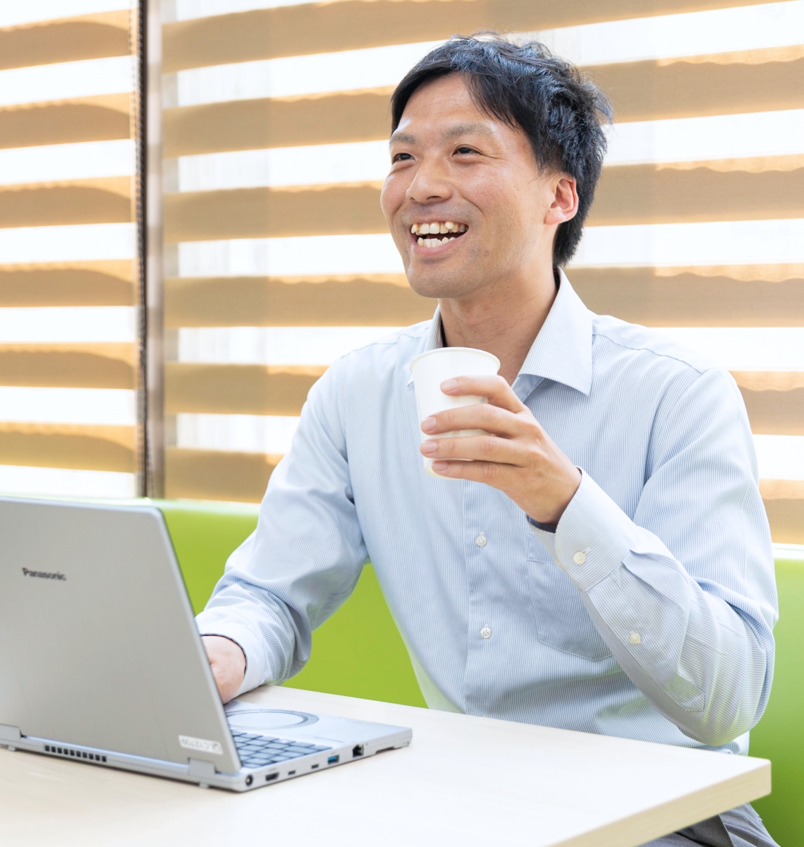 定期面談で自己成長を実感。ムラテックは歴史ある会社なので堅いイメージを持っていましたが、実際はとても穏やかです。社長でさえ「さん付け」で呼ぶ文化なのは珍しいかもしれないですね。また、朝礼ではチームの進捗を共有し合い「困っていないか」「フォローできることはないか」と声をかけ合う習慣があります。視野を広く持ち、お互いの業務をサポートしあえる関係性は、ムラテックならではの強みですね。働き方も非常に柔軟で、場合によってはリモートワークも可能ですし、プライベートの事情にも配慮してくれます。育休取得の実績もあり、ライフスタイルに合わせた働き方ができるのも安心です。