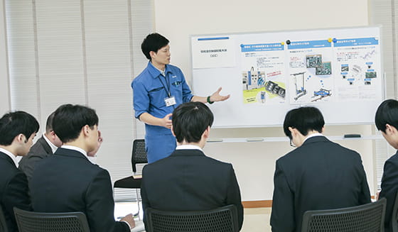 製品の見学や社員との座談会を通じ、村田機械が様々な業界の裏側を支えているところや、村田機械の技術力について理解を深めていただくコースです!