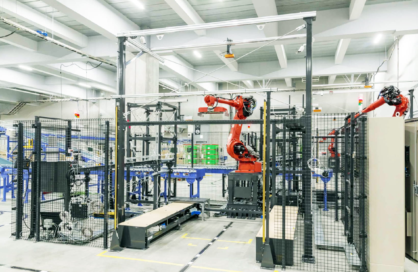 物流センターを構築する際、多くの同業他社は自社製品のみでシステムレイアウト設計を考えますが、村田機械は違います。当社は理想の設備を実現するためなら他社製品も積極的に採用する風土があり、お客様もそんな当社の姿勢に期待してオファーしてくださいました。そこで私たちは社内外を問わず、さまざまな最新鋭機器の導入を検討。自社の新製品であるシャトライナー(コンベヤによる搬送機能とソーターによる仕分け機能を併せ持つ、高能力ケース搬送・仕分けシステム)を核に、協力会社のパレタイズロボットやカゴ車搬送AGVなどの先進的な機器を次々と導入することを決めました。
